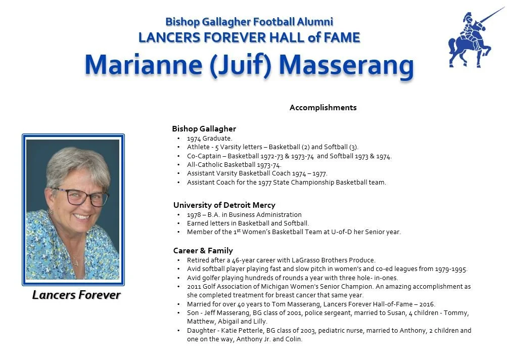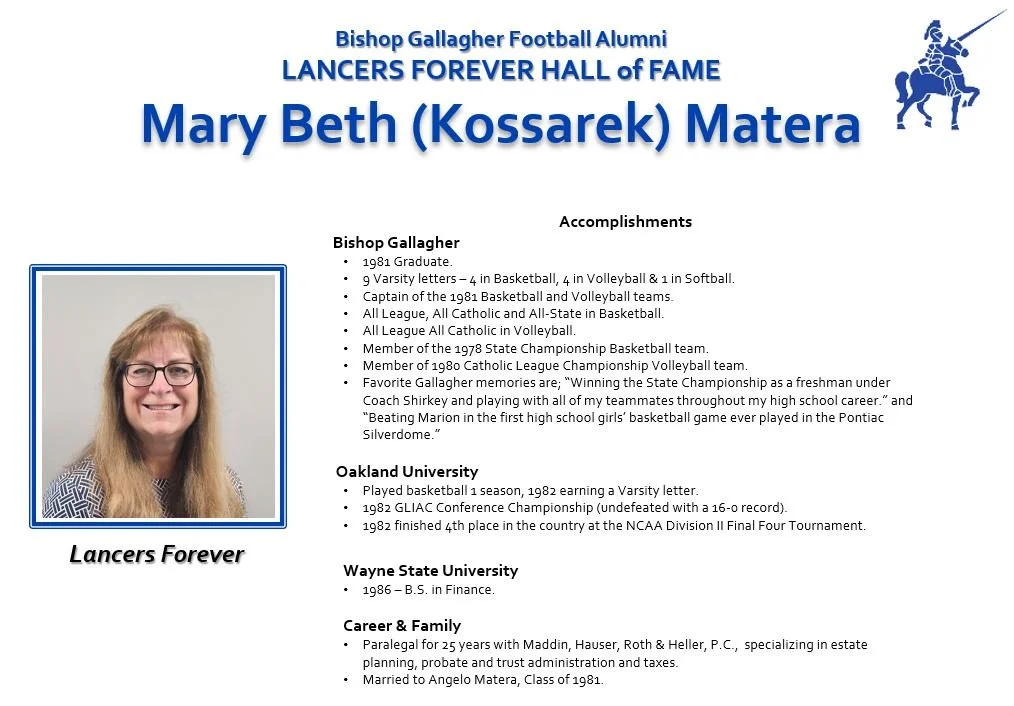 2023 Lancers Forever Hall-of-Fame Class: Dan Fitzgerald, Mary Beth (Kossarek) Matera, Marianne (Juif) Masserang & Tom Michalski